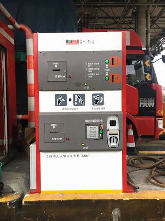 經過對比、篩選,公司最終確定選用由蘇州朗為控制技術有限公司生產的TCR86-10型號的自動發(fā)卡機,該型號發(fā)卡機有上下兩個取卡區(qū)共四個卡口,分別提供給大小車司機使用,其中下卡區(qū)還配置了雙軸折疊式機械手作為發(fā)卡和送卡的延伸裝置。當司機按下取卡按鈕時,卡機會自動將卡傳送給機械手,機械手抓卡后,伸展臂長,將卡外送一段距離,方便用戶輕松取卡,當用戶取卡后該裝置又會自動縮回到面板中,以防刮擦。 該發(fā)卡機還有一個優(yōu)勢,內部共設置四套發(fā)卡機構(每套能容納250張卡),當某一套卡發(fā)完或出現故障時,可以自動切換到另一套工作,確保了系統(tǒng)具有充分的備份和容錯能力。另外,它還能兼容人工發(fā)卡,實現系統(tǒng)無縫對接。