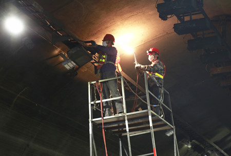 當天工程主要是進行燈具、風機、布管線、火報、廣播、攝像頭控制箱的安裝,接線調(diào)試,瓷磚修補,洞壁注漿、地面病害處置、垃圾清理等。據(jù)悉,截止當天晚上10:30,隧道內(nèi)燈具、風機已全部安裝完畢,黃土嶺隧道群整治已完成總工程量的60%。