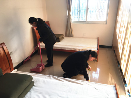 圖為打掃衛(wèi)生現(xiàn)場 在為期一個月的“文明寢室”評比活動中,考評小組通過四次突擊檢查,發(fā)現(xiàn)各寢室內(nèi)務衛(wèi)生整體水平顯著提升,基本做到了勤開窗通風,勤做大掃除,被褥疊放整齊,地面、桌面干凈整潔,門框、柜頂一塵不染。通過評比,大家講衛(wèi)生,爭做“文明人”的熱情度極大地提高,同時在評比中積極查漏補缺,改正不足。 最后經(jīng)評比,李菊麗、葉懿慧、吳琴琴、徐海源被評為“文明個人”,其所在寢室被評為“文明寢室”。 陳瑩