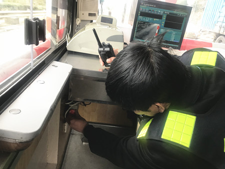 圖為工作人員自查崗?fù)?bào)警器 此外,工作人員對(duì)收費(fèi)區(qū)域內(nèi)的消防、交通、崗?fù)ぴO(shè)施設(shè)備,以及票證、通行費(fèi)等安全情況進(jìn)行了一次自查,確保安全用電,做好消防和防盜措施,并對(duì)當(dāng)班收費(fèi)員進(jìn)行現(xiàn)場(chǎng)稽查,檢查大家在當(dāng)班期間的崗?fù)きh(huán)境是否衛(wèi)生,臺(tái)面是否整齊,著裝是否統(tǒng)一,有無佩戴上崗證,儀表舉止是否規(guī)范,文明用語是否親切,以及抽屜大額現(xiàn)金有沒按規(guī)定放入保險(xiǎn)箱等。大家的合力檢查和相互配合,為春運(yùn)安全暢通、防寒防凍工作提供了強(qiáng)有力的保障。 陳瑩
