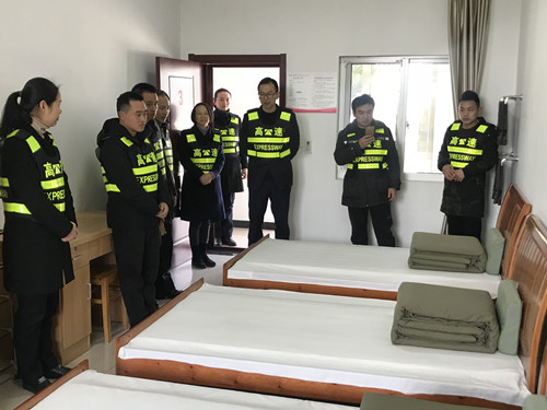圖為考察小組在員工寢室參觀軍事化內(nèi)務 考察小組負責人表示,通過本次現(xiàn)場觀摩與文明服務錄像交流受益匪淺,交流的不僅是業(yè)務,更多的是思路。 此次交流學習,兩個兄弟站所相互切磋、相互進步,取長補短,為共同創(chuàng)建具有特色的優(yōu)質(zhì)收費站夯實基礎。 陳瑩