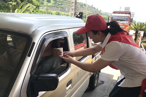 “大中午的,天氣熱,剛才還暈乎乎的想睡覺,現(xiàn)在喝了一杯冰冰涼的綠豆湯,整個人都舒暢了?!币晃回涇噹煾甸_心地說。 “沒想到,你們收費站還有這個服務(wù),這次我要出趟遠(yuǎn)門,說不定路上還真能用的上,謝謝呀!”一位接過礦泉水和風(fēng)油精的老師傅連聲道謝。 天氣雖炎熱,服務(wù)不“打烊”。 在活動中,志愿者們不顧自身大汗淋漓,仍身披橫幅,頭戴小紅帽,面帶微笑向途經(jīng)收費所的司機們遞上一杯杯綠豆湯、一瓶瓶礦泉水。同時,大家還不忘宣傳行車安全注意事項,提醒司機朋友在高溫酷暑時節(jié)多注意行車安全。