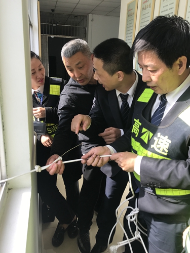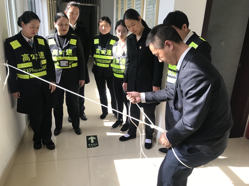 圖為演練現(xiàn)場 隨著所長孫明偉提問式的開場白,近日,臨海南收費所以班組為單位,分四天集中開展全員逃生繩演練活動。全所員工積極參與、親身體驗,活動達到預期效果。 整個演練過程中,培訓人員詳細講解了打繩結的方法與注意要點,現(xiàn)場氣氛踴躍。通過開展此次活動,本所員工不僅掌握了逃生繩的使用方法,提高了高層逃生自救能力,而且進一步提高了面對突發(fā)火情的應對能力,增強了“防火防災”的安全意識。 陳瑩
