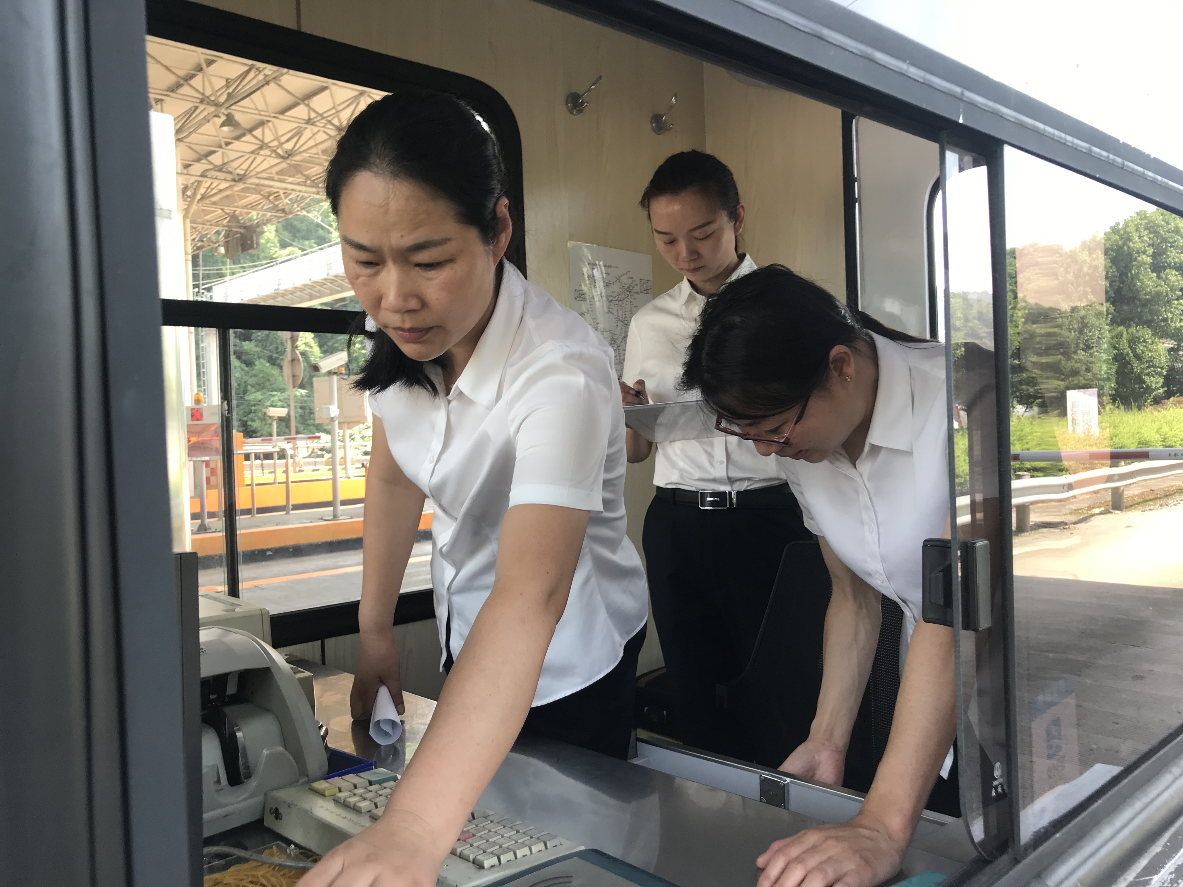 圖為員工檢查崗亭設施設備