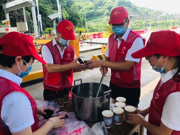活動(dòng)現(xiàn)場(chǎng),志愿者們身穿耀眼的紅馬甲,面帶微笑,顯得格外耀眼動(dòng)人。雖然大家的衣服早已被汗水浸透,但熱情周到的服務(wù),獲得了過(guò)往司乘的紛紛點(diǎn)贊。臨海南收費(fèi)所通過(guò)開(kāi)展“夏日送清涼”活動(dòng),不僅送去了高速公路工作者的愛(ài)心,同時(shí)也拉近了與司乘人員之間的溝通交流,贏得了過(guò)往司乘人員的好評(píng),塑造了良好的窗口形象。 除了為司乘送“清涼”,該所也真正做到把清涼送到收費(fèi)一線,把關(guān)懷送到員工心坎,保障員工的健康權(quán)益,為員工提供了清涼油、克痢痧、午時(shí)茶、藿香正氣水等防暑降溫物品。食堂每天精心熬制不重樣甜湯,大家喝到提前冷涼的甜湯紛紛表示,三伏天里,雖然感到悶熱難受,但在休息的時(shí)候能喝上一碗涼涼的甜湯,真幸福。并保證一定會(huì)克服酷暑高溫,堅(jiān)守崗位,盡職盡責(zé),積極投身于收費(fèi)、交通疏導(dǎo)工作中。