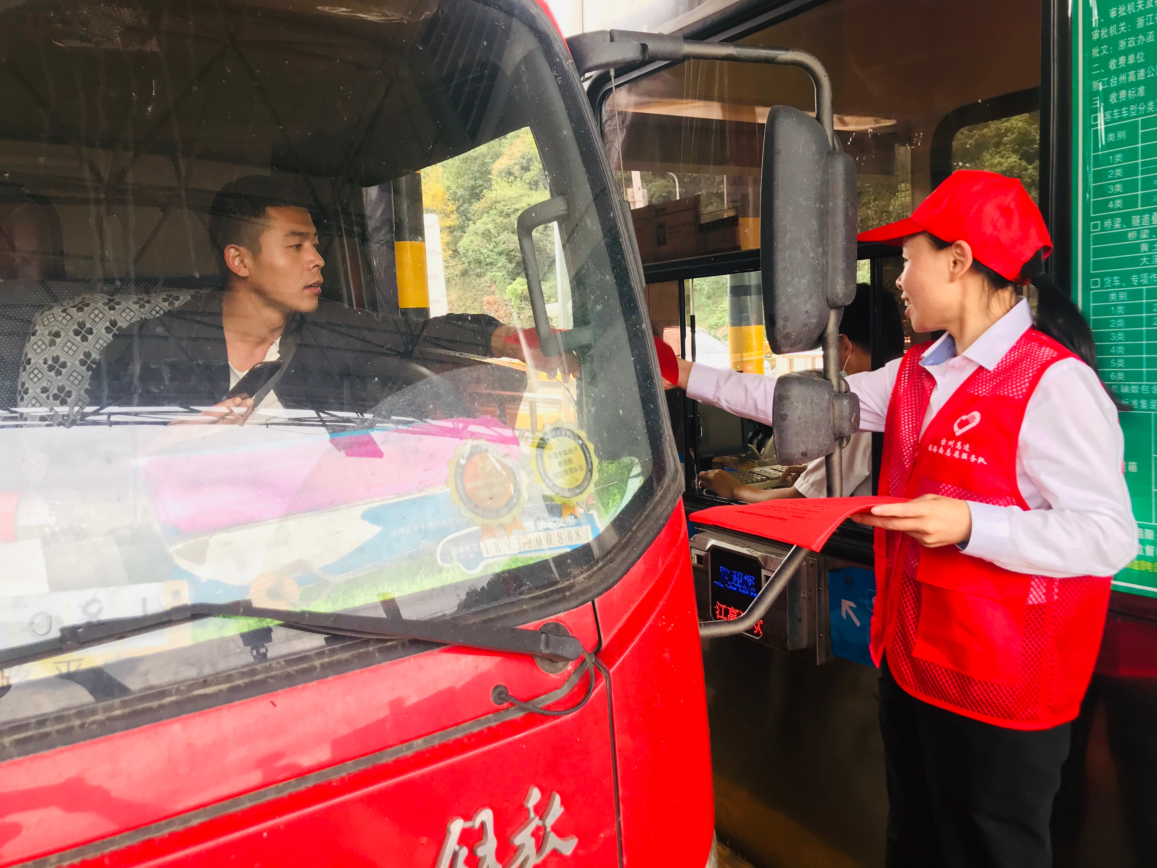 近日,臨海南收費(fèi)所開展《高速公路通行貨車應(yīng)急處置提示》宣傳志愿活動(dòng)。 活動(dòng)當(dāng)天,臨海南收費(fèi)所志愿服務(wù)者在收費(fèi)廣場(chǎng)通過搭建專題宣傳臺(tái)、發(fā)放宣傳單等多種形式,向廣大司乘人員普及高速公路通行貨車應(yīng)急處置措施,并耐心解答司乘人員提出的問題。