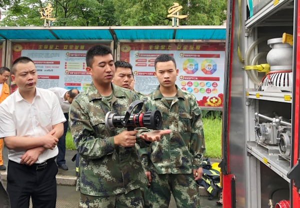圖為培訓現(xiàn)場 活動現(xiàn)場,黃巖消防大隊官兵向參加活動的員工展示消防車上的消防裝備實物,講解裝備使用功能以及消防車基本構(gòu)造,耐心地解答員工提出的問題,并當場進行專業(yè)的消防水帶連接滅火演示。之后,臺州收費所員工開展消防水帶連接滅火演練,獲得黃巖消防大隊官兵的肯定,同時針對演練中存在的問題及不足給出專業(yè)性的指導意見。