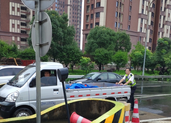車輛故障拋錨 收費員冒雨推行 7月4日中午12時30分左右,一輛牌照為浙開頭的五菱小貨車停在臺州收費所出口5號車道安全島邊上許久未動,來往車輛紛紛避開該車道。當班班長郭斯泓發(fā)現(xiàn)這一情況后立即上前詢問,并在該車后放置隔離桶,提醒駕駛員打開雙閃燈。