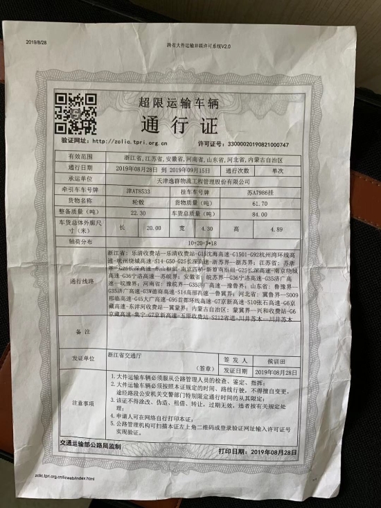 圖為該車通行證 在此,筆者提醒廣大司機朋友們,一定要合法裝載,避免超限超載。高速公路現(xiàn)已實行黑名單制度,違法超限超載運輸車輛將被納入“黑名單”,如未及時處理將禁止其駛?cè)敫咚俟贰?/span> 楊雅芬