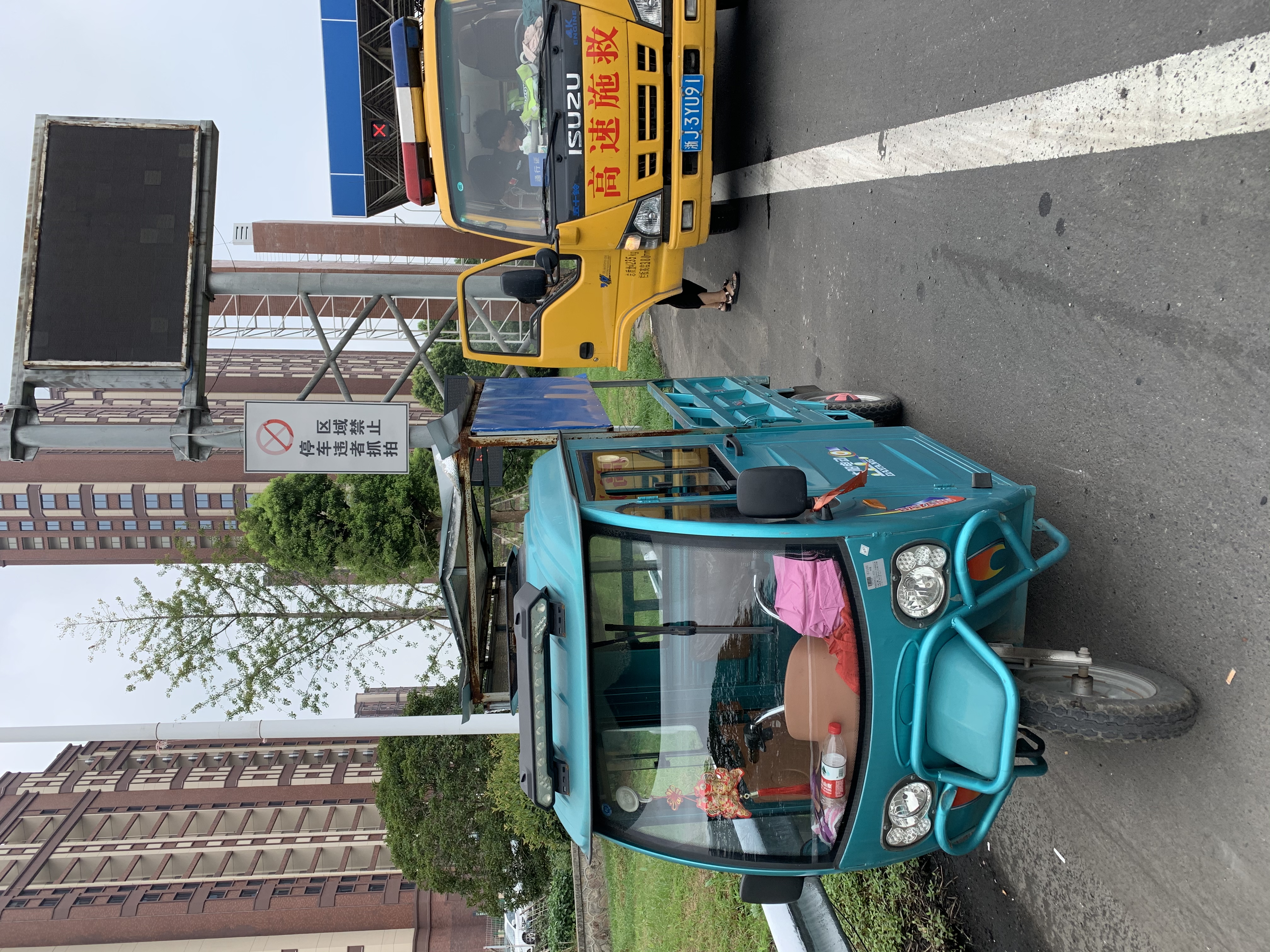 三輪車誤入高速 危險!??! 7月26日上午,一輛電動三輪車緊跟在大貨車后面開進(jìn)臺州收費所入口車道,被發(fā)現(xiàn)后不顧收費員勸阻,撞開欄桿,直奔寧向入口匝道。 10點18分,收費員發(fā)現(xiàn)此電動三輪車緊隨大貨車試圖進(jìn)入高速,立即勸阻,但三輪車主不聽勸,收費員準(zhǔn)備出崗?fù)穹禃r,她直接撞開欄桿向前行駛,收費員立即用對講機(jī)匯報了情況。此時正在出口處理特情的班長聽到后,快速往匝道口追去,邊追邊喊,并通知監(jiān)控中心,然而三輪車加速前行。10點30分左右,交警在主線找到這輛三輪車并攔截住,10點50左右在高速救援車(輪胎車)的護(hù)送下,安全出高速。