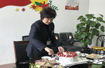 圖為陶秀英同志在歡送會現(xiàn)場切蛋糕 歡送會上,章海峰代表臺州高速,對陶秀英同志二十余年如一日為集團(tuán)發(fā)展所付出的辛勞和貢獻(xiàn)表示了衷心感謝,預(yù)祝她退休生活豐富多彩,也希望她退而不休,?;?/span>“家”看看。同時號召年輕員工學(xué)習(xí)陶秀英身上傳承勤勤懇懇、認(rèn)真踏實(shí)的態(tài)度與精神,為征費(fèi)管理共努力,為集團(tuán)發(fā)展共拼搏。