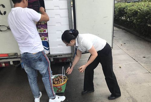 圖為工作人員幫司機(jī)撿李子 一個(gè)個(gè)李子雖小,卻很調(diào)皮。有的滾到了欄桿前,有的溜到了車(chē)道的狹縫里,有的甚至逃到了車(chē)底下,收費(fèi)員鄭維見(jiàn)狀,立馬彎腰撿李子,又迅速跑到欄桿前,很靈活地抓起了好幾個(gè)李子。狹縫里都是沖洗車(chē)道留下來(lái)的臟水,鄭維又毫不猶豫地將手伸向臟水里撿李子,再拿到水龍頭前沖洗一番后放回到司機(jī)的籃子里。一來(lái)一回好幾趟,原本平日里就怕熱的鄭維早已滿身大汗,此時(shí)她卻全然不顧。