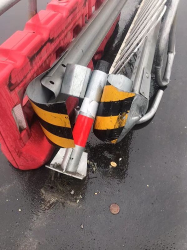 圖為被撞壞的設(shè)施 當天10點10分, 該所出口外廣場,一輛5類大貨車趁著雨勢較大,竟私自將道路中間水碼移開,然后違規(guī)掉頭撞壞隔離帶及外部鐵質(zhì)柵欄后逃逸。因當時雨勢大且該車車速較快,收費二班當班安全員林葉輝在追逐示警無效后立刻報告班長陳軍,通過調(diào)取監(jiān)控錄像后查到該車車牌,并迅速與指揮中心取得聯(lián)系。經(jīng)指揮中心查詢,該車為某公司名下運輸車輛,隨即陳軍與該公司取得聯(lián)系。 經(jīng)了解,該車駕駛員因雨天行駛速度慢,怕耽誤去院橋下貨,一時沖動違規(guī)掉頭想節(jié)省時間,在撞到隔離帶后更加慌張?zhí)右荨T诤驮撥囁緳C耐心溝通后,司機表示下完貨后會立刻前來處理。 經(jīng)過近一個小時的等待,這位司機終于回到現(xiàn)場,公司理賠人員及安保人員與司機一同確認隔離帶損壞情況,確認無誤后該車司機繳納了賠償款后駕車離開。 在此筆者提醒各位司機朋友,切勿違規(guī)掉頭以免造成不必要的危險。 洪燈杰