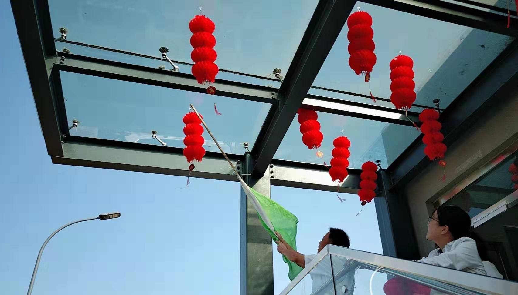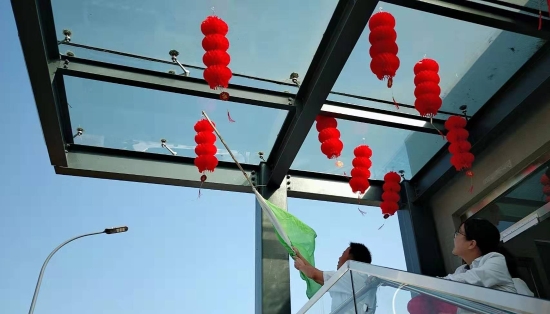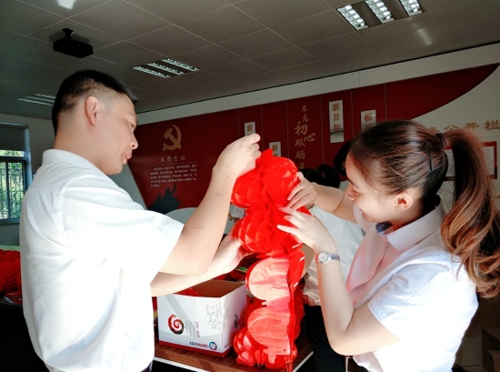 圖為工作人員一起布置收費(fèi)所 在慶祝祖國(guó)70周年生日的日子里,最火的顏色就是紅色。為了弘揚(yáng)中華民族傳統(tǒng)文化,溫嶺西收費(fèi)所后勤組早早購(gòu)置了燈籠、彩旗、五星紅旗,寫(xiě)好“慶祝祖國(guó)70周年華誕”大字等。黨員帶頭,團(tuán)員緊跟,一線收費(fèi)員紛紛參與,在收費(fèi)站大門(mén)口、辦公樓、食堂、宿舍等區(qū)域精心用五星紅旗、大紅燈籠、五顏六色的彩旗裝點(diǎn),一抹抹艷麗的國(guó)旗紅,成為站點(diǎn)最靚麗的風(fēng)景。明亮的黃、鮮艷的紅,美麗窗口突然亮了起來(lái),到處洋溢著濃濃的國(guó)慶氛圍,為過(guò)往司乘提供暢、潔、美的節(jié)日行車(chē)環(huán)境。 溫嶺西收費(fèi)所后勤組還精心策劃、精細(xì)編排,制作了具有特色、獨(dú)具創(chuàng)意的生日祝福“小視頻”,祝祖國(guó)生日快樂(lè)! 通過(guò)開(kāi)展弘揚(yáng)愛(ài)國(guó)精神,喜迎國(guó)慶活動(dòng),溫嶺西收費(fèi)所全所工作人員更加不忘初心,砥礪前行,共同慶祝祖國(guó)70周年華誕。 鄭霞霞