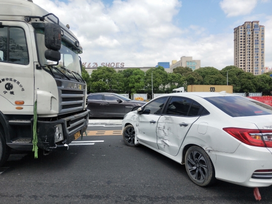 集裝箱收費(fèi)站出口變道,兩車(chē)“親吻” 高速收費(fèi)站出口,由于一些司機(jī)沒(méi)有減慢車(chē)速,沒(méi)有觀察左右方來(lái)車(chē),或者因強(qiáng)行搶道而引發(fā)交通事故。 4月1日12點(diǎn)16分,在溫嶺西高速公路收費(fèi)站出口,突然一聲巨響,大貨車(chē)司機(jī)緊急剎車(chē),輪胎與地面劇烈摩擦。一輛車(chē)牌為浙B的集裝箱與一輛車(chē)牌為浙C的小轎車(chē)相撞,小轎車(chē)的車(chē)門(mén)瞬間被撞得凹凸不平,且整個(gè)車(chē)身橫在集裝箱車(chē)頭前面,現(xiàn)場(chǎng)看起來(lái)似乎是小轎車(chē)司機(jī)掉頭“變道”導(dǎo)致兩車(chē)相互“親吻”。
