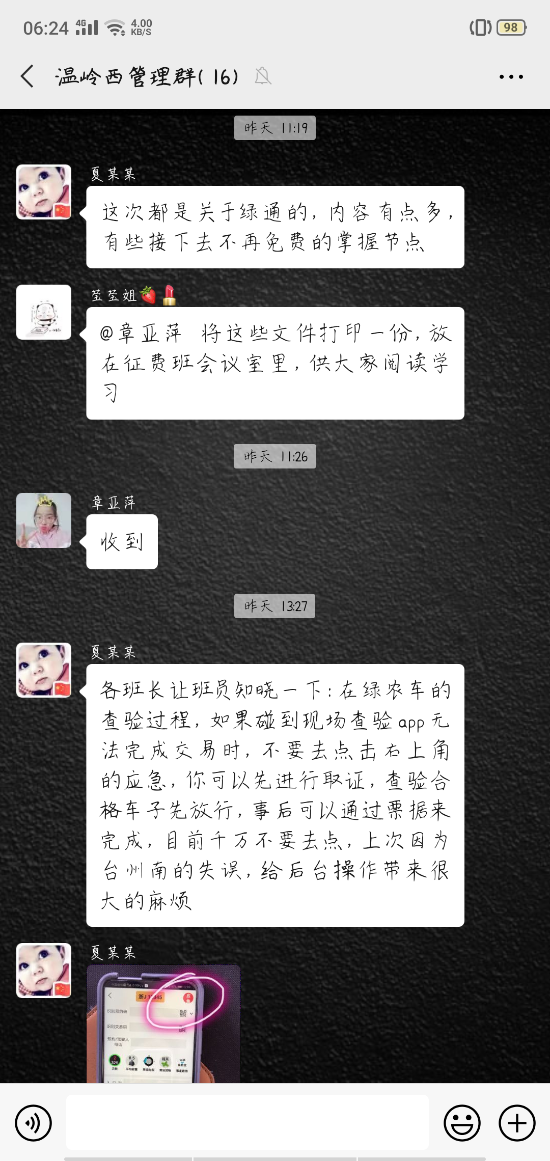 圖為需要學(xué)習(xí)的各個(gè)文件內(nèi)容 培訓(xùn)采取集中學(xué)習(xí)與線上學(xué)習(xí)相結(jié)合,理論知識(shí)與現(xiàn)場(chǎng)操作相結(jié)合、互動(dòng)交流與相互提問相結(jié)合的方式開展,通過釘釘、微信等學(xué)習(xí)平臺(tái),每天,各班班長(zhǎng)組織班員開展崗前五分鐘提醒、崗后班組集中學(xué),確保每一名收費(fèi)人員能夠熟練掌握新收費(fèi)系統(tǒng)的各項(xiàng)操作流程。此外,各班班長(zhǎng)及時(shí)梳理匯總收費(fèi)員們?cè)趯?shí)際操作中遇到的問題,并上傳至管理群,群中全員參與,一起討論學(xué)習(xí)。遇到無(wú)法解決的問題時(shí),所負(fù)責(zé)人第一時(shí)間與上級(jí)主管部門溝通,以尋求最佳解決方案,并發(fā)布到群里,明確操作流程和統(tǒng)一相關(guān)政策解釋工作。 本次培訓(xùn)不僅使全所每一位員工鞏固了前期業(yè)務(wù)知識(shí),也更加深入掌握了收費(fèi)新系統(tǒng)的操作流程以及新收費(fèi)政策,為恢復(fù)正常收費(fèi)穩(wěn)步進(jìn)行奠定了堅(jiān)實(shí)的基礎(chǔ)。 鄭霞霞