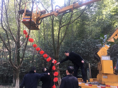 圖為掛好的燈籠 過年掛燈籠是中國古老習(xí)俗,紅色代表喜慶,圓形燈籠寓意團(tuán)圓美滿。該所工作人員利用午休時間自制大紅燈籠750盞,并拿線連成串,大家借來登高車將燈籠掛在綠蔭道兩旁以及公路下方車輛經(jīng)過的地方。遠(yuǎn)觀這掛好的燈籠,一片紅火,形成春節(jié)期間一道亮麗的風(fēng)景線。 一盞盞紅彤彤的燈籠將隧道所裝點(diǎn)得十分溫暖、祥和,注入了濃濃的年味和活力,同時也寄予了大家對新年美好的希望與祝福,希望往來的司機(jī)都能接收到這份祝福,過個平安祥和的幸福年。 毛譯聆