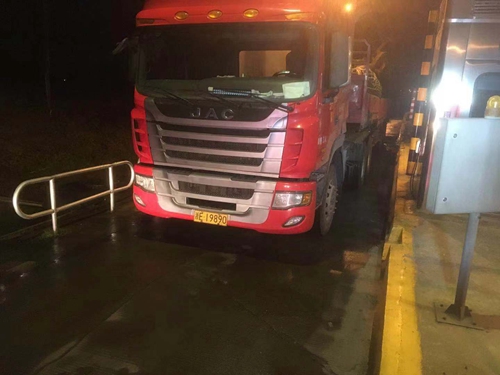 圖為超高超寬的運樹大貨車 5:10分,違章大貨車通過黃土嶺隧道,由于大貨司機一直違章占隧道中線行駛,未對黃土嶺隧道設(shè)施設(shè)備造成影響,執(zhí)勤隊員便跟在違章車輛后面關(guān)注其進(jìn)出口動向。 5:29分,違章車輛在臺州南副站出口處被執(zhí)勤隊截停,等待處理善后事故的交警車輛到來。