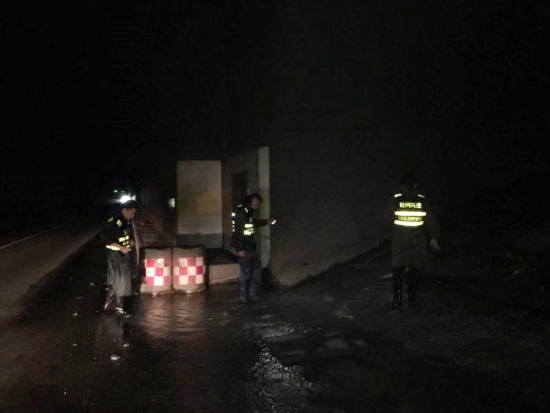 一大早,徹夜未眠的所負(fù)責(zé)人、執(zhí)勤隊員又開始緊張忙碌:巡查斜井、邊坡、山體、邊溝部位;檢查南北配電房漏水情況,確保臨時用電安全;查看所轄路段警示牌倒塌或受損情況;及時補充抽水泵等應(yīng)急物資,增加豎井排水設(shè)備,提高排水能力,預(yù)防隧道內(nèi)出現(xiàn)雨水倒灌現(xiàn)象;給停電停水的馬宗嶺隧道人員送去糧食和飲用水等物資,做好后勤保障。