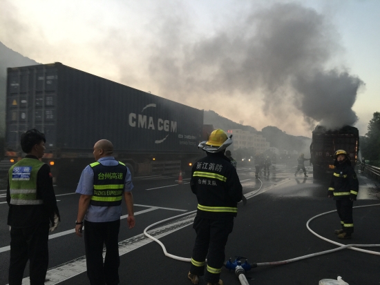 高速貨車起火 多部門應(yīng)急聯(lián)動(dòng)除隱患 9月14日17:52,甬臺(tái)溫高速黃土嶺隧道出口寧向1638米處,一輛滿載廢舊電器物品的貨車在高速上突然起火。