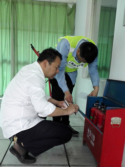 圖為檢查現(xiàn)場(chǎng) 該所副所長(zhǎng)應(yīng)錦清帶領(lǐng)隊(duì)員仔細(xì)檢查了南北配電房的機(jī)電設(shè)施,隨后對(duì)管理房的干粉滅火器、隧道內(nèi)的泡沫滅火器,配電房、中控室的二氧化碳滅火器進(jìn)行逐一檢查,查看每個(gè)滅火器的壓力值、出氣管有無彎折、堵塞、損傷,壓把和閥體等金屬件有無變形和銹蝕,是否還在使用年限之內(nèi)等等,并做好相應(yīng)的檢查記錄。 陳智慧