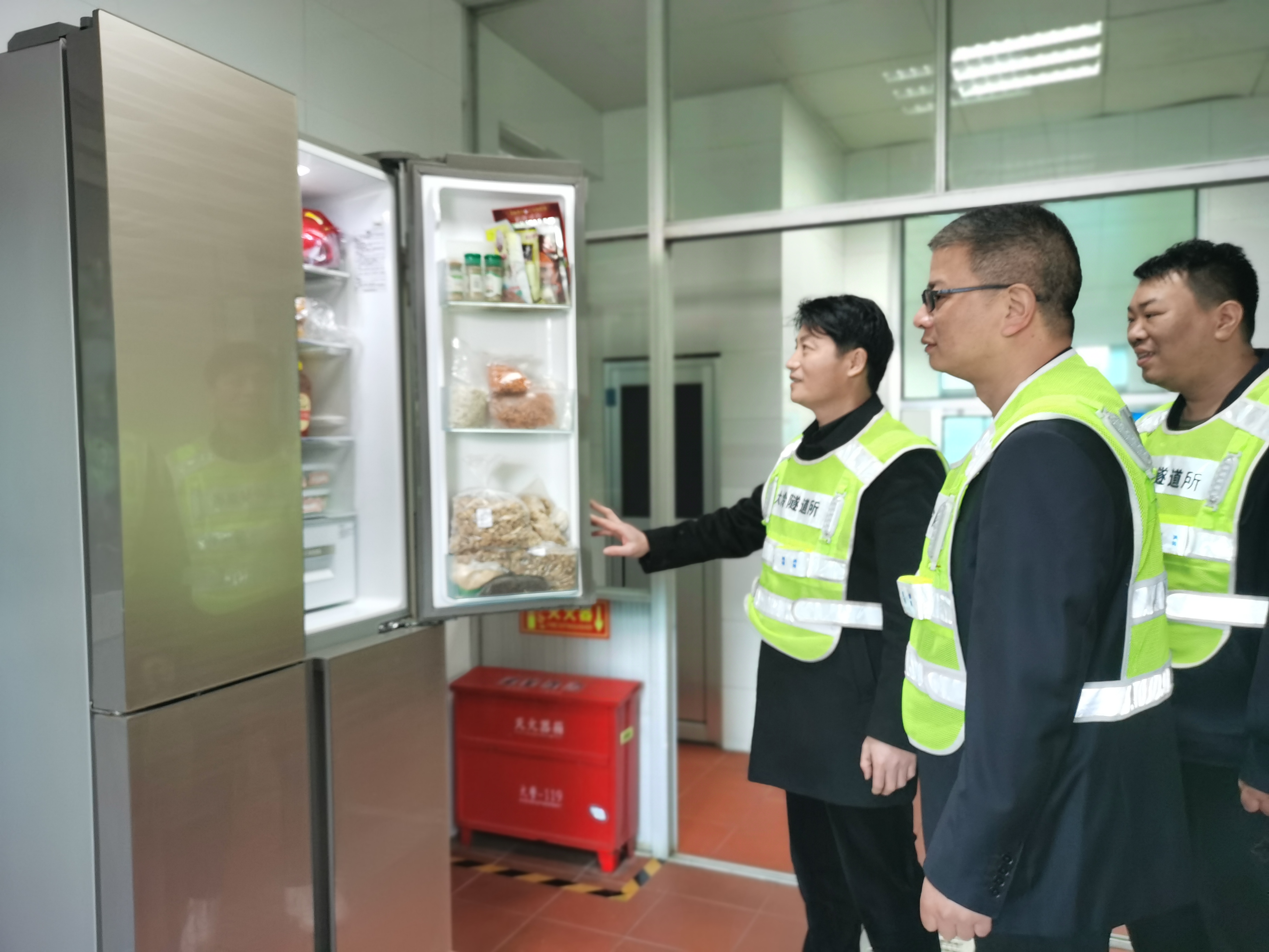 圖為檢查組在食堂檢查 此次節(jié)前安全大檢查活動(dòng)能夠消除隧道安全隱患,為節(jié)日期間高速隧道的安全暢通也提供了有效保障。 陳智慧