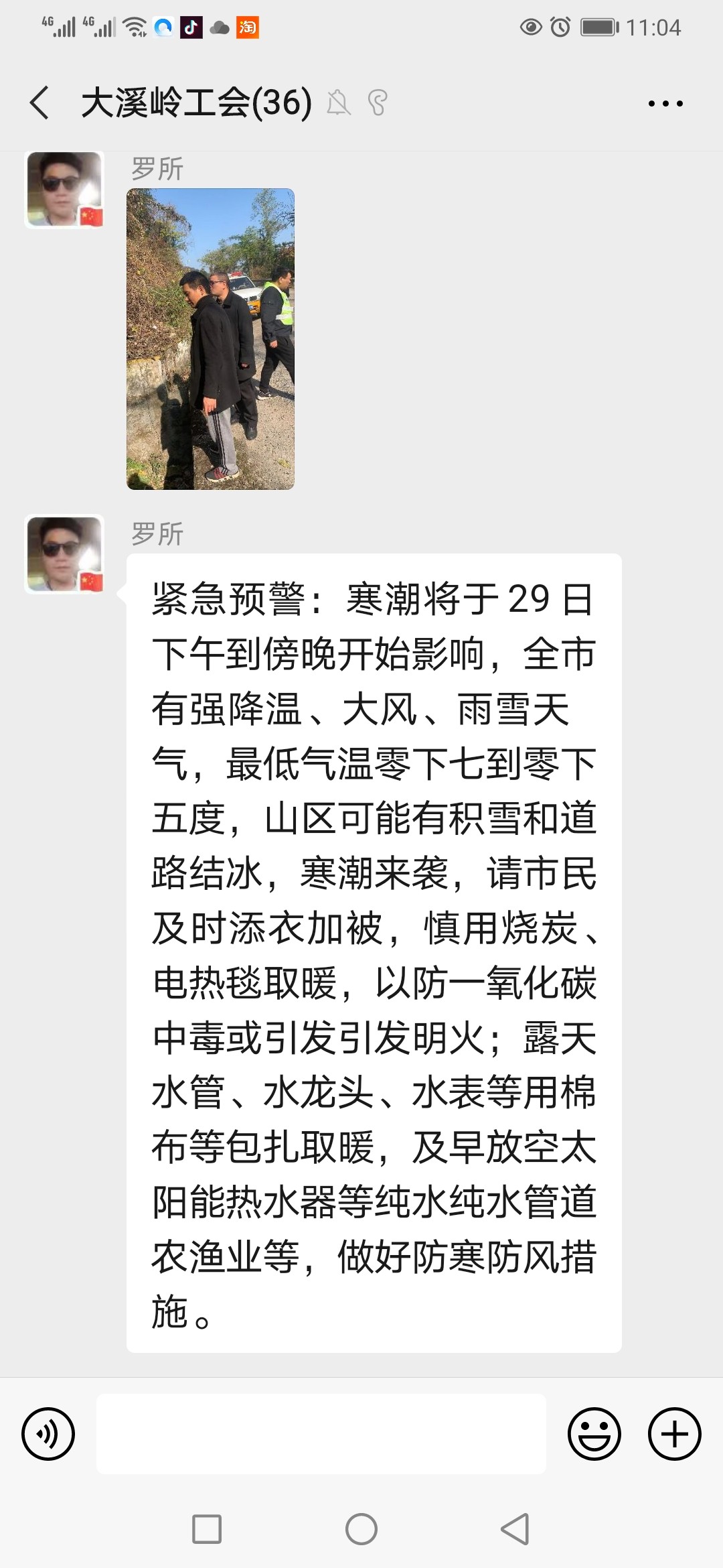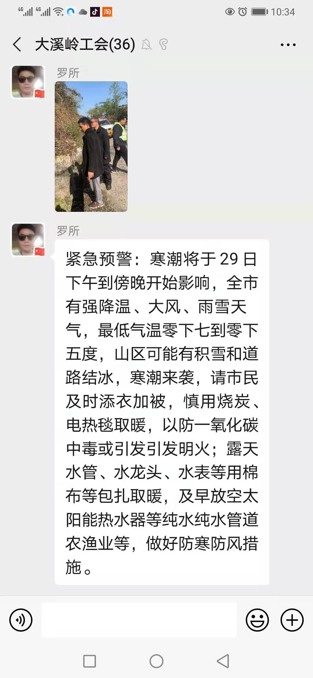 大溪嶺暖心行動(dòng)還在所里的工作群中“溫馨提醒:寒潮前家中如何做好用水設(shè)備的防凍保暖”,并提醒安全用電注意事項(xiàng)。2020的最后幾天,希望大家都能平平安安地度過,迎接牛氣沖天的2021! 陳智慧