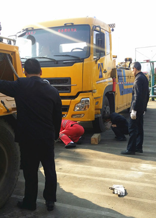 圖為演練現(xiàn)場 廣場上,當(dāng)指揮員下達(dá)“拖車兩次增高作業(yè)演練開始”口令后,拖車在輔助工的引導(dǎo)下,駕駛員將拖車緩緩地倒到故障車的前面,停穩(wěn)后,輔助工立馬從工具箱里拿出托叉、方木等附件,將托叉插入托叉座,調(diào)整好位置,駕駛員操縱操作手柄進(jìn)行第一次托舉鋼板作業(yè)。當(dāng)抬高一定高度后,輔助工將方木填在前輪胎下面,然后放下托臂,重新調(diào)整好位置,進(jìn)行第二次托舉工字梁作業(yè),直到達(dá)到安全高度,輔助工才抽出方木,駕駛員迅速將故障車拖離現(xiàn)場。兩次增高作業(yè)順利完成,演練達(dá)到了預(yù)期效果。 演練現(xiàn)場,氣氛熱烈,員工們針對復(fù)雜車型和去年拖車過程中發(fā)生的事故案例,相互探討,并紛紛表示在今后的工作過程中,要根據(jù)車型的實(shí)際情況,掌握各種作業(yè)技巧,同時(shí)要吸取事故教訓(xùn),增強(qiáng)安全意識,確保作業(yè)安全。 何先林