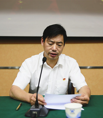 圖為黨群部主任傳達(dá)相關(guān)文件精神