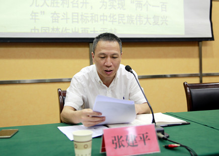 圖為公司黨委副書記、總經(jīng)理張建平傳達有關(guān)會議精神