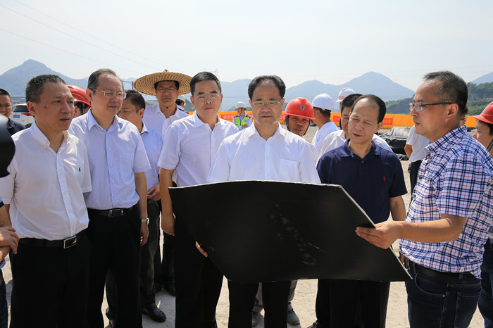 9月11日上午,市委書(shū)記王昌榮帶領(lǐng)市委市政府及相關(guān)部門(mén)主要負(fù)責(zé)人親臨施工一線,調(diào)研內(nèi)環(huán)路(黃巖段)建設(shè)情況。集團(tuán)副董事長(zhǎng)、總經(jīng)理張建平陪同調(diào)研。
