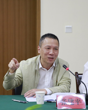 圖為集團(tuán)黨委副書記、副董事長、總經(jīng)理張建平介紹集團(tuán)相關(guān)情況