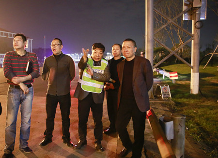 圖為集團總經理張建平檢查臺州收費所 協(xié)調會后已近晚上,張建平又帶領公司副總經理章海峰等人員來到臺州收費所,先后查看了員工宿舍、食堂和外廣場,要求盡快恢復臺州站名燈、車道燈和外廣場路燈照明,并加快推進臺州所車道拓寬改造工作。 張琛