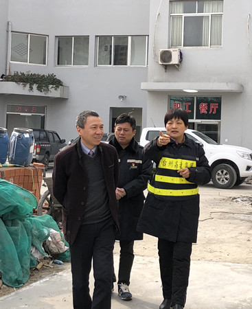 圖為公司總經理張建平檢查溫嶺西收費所在建生活區(qū)域