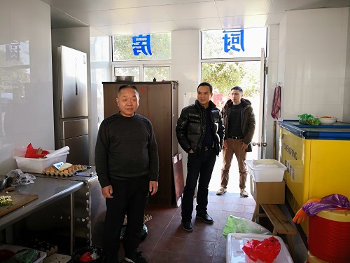圖為公司副總經(jīng)理羅小將查看詢問員工飲食情況