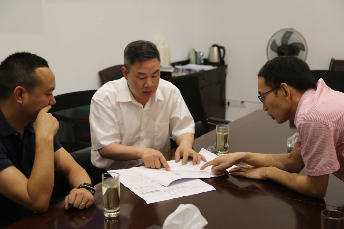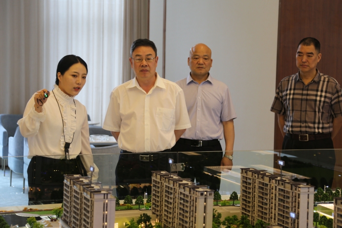圖為集團領導陳文波聽取房產(chǎn)項目介紹