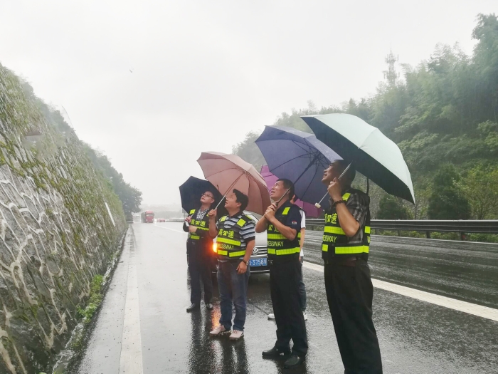 集團總工程師江輝帶領道路安全檢查組到沿線查看黃土嶺隧道北洞口高邊坡情況,以及大溪嶺隧道管理所消防集水池進水管被堵塞情況,研究確定整改方案,落實整改工作。