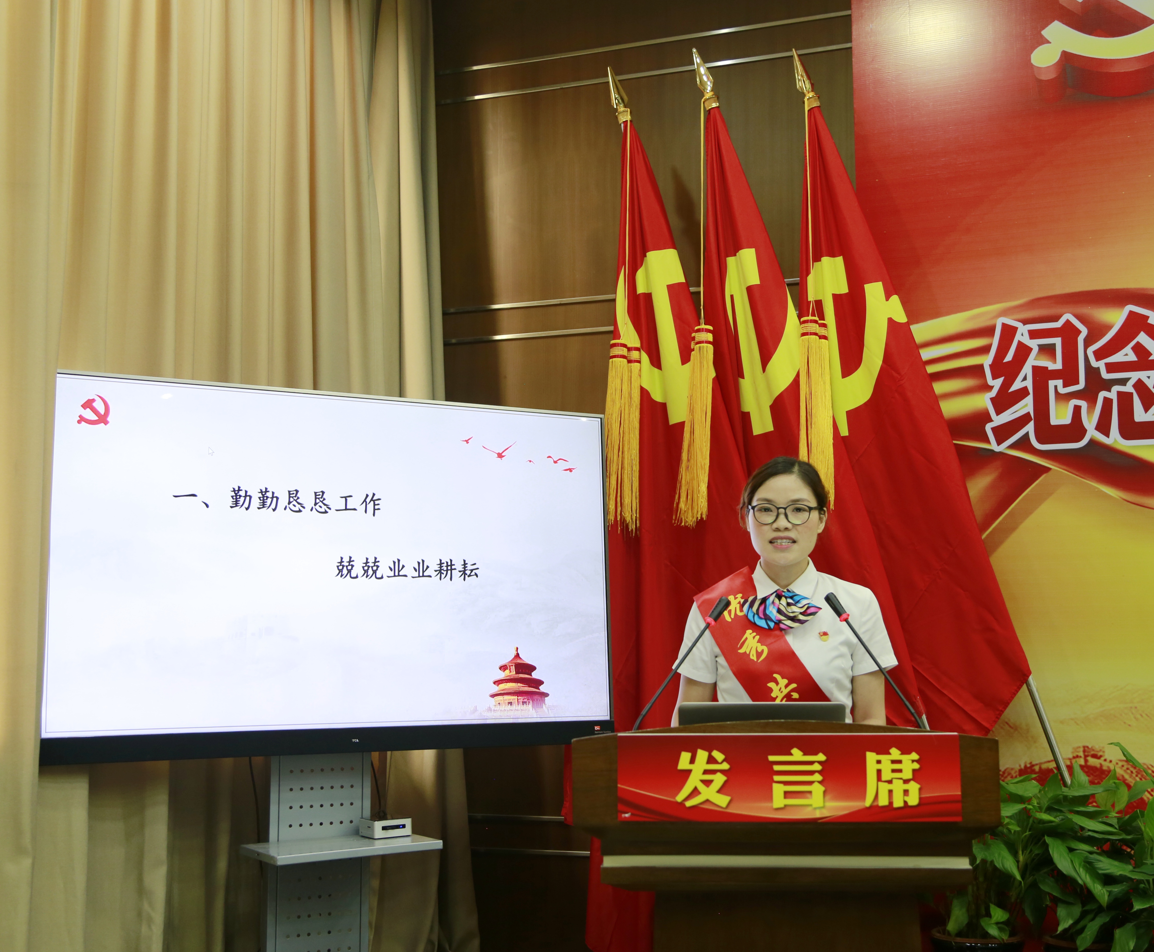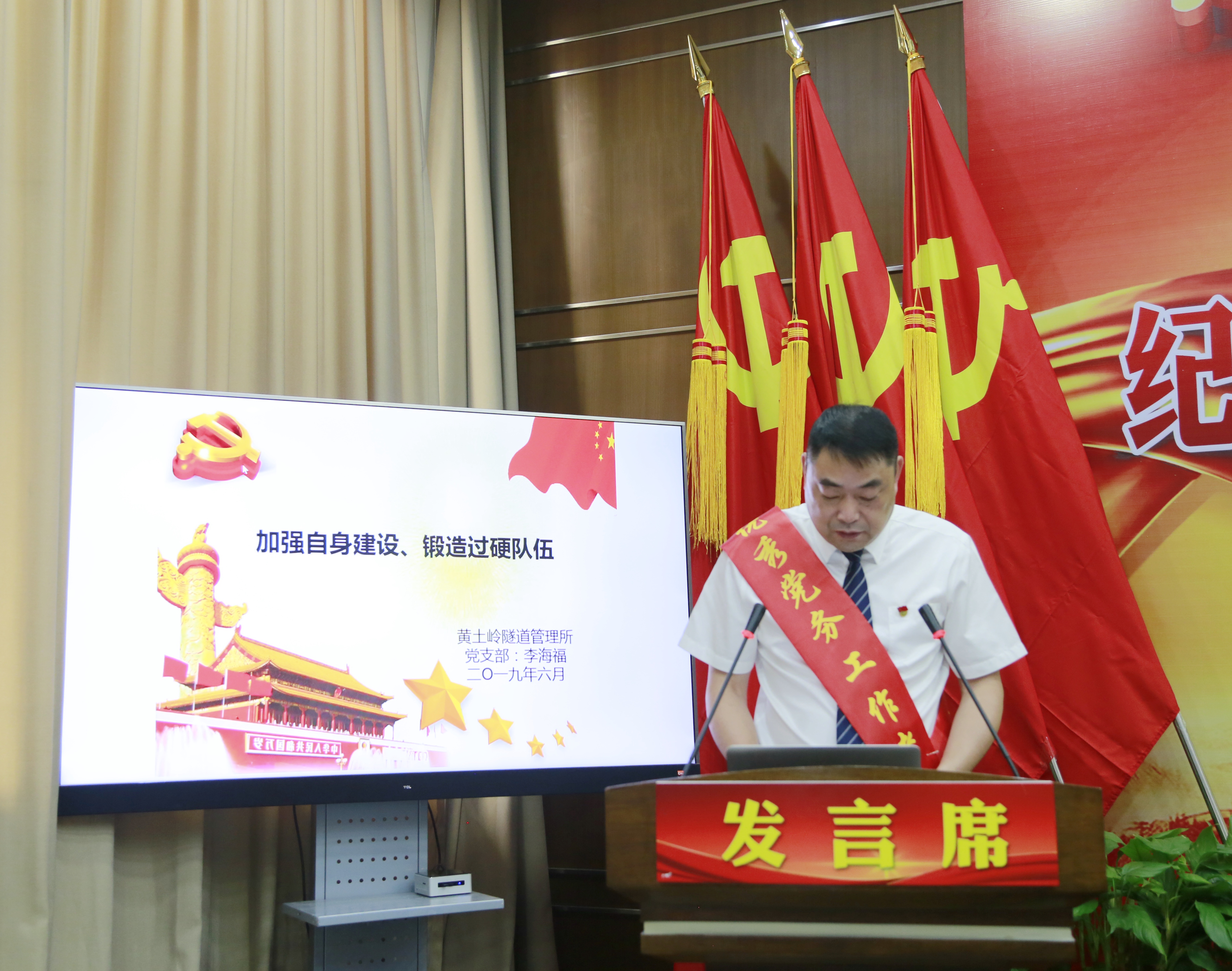 一個(gè)支部一座堡壘,一名黨員一面旗幟。6月份以來(lái),集團(tuán)各條戰(zhàn)線對(duì)照標(biāo)準(zhǔn)共評(píng)出12位先進(jìn)共產(chǎn)黨員,3位優(yōu)秀黨務(wù)工作者及2個(gè)先進(jìn)支部,并推選代表進(jìn)行先進(jìn)事跡報(bào)告,以此方式慶祝黨的生日。行政黨支部曾莉莉“平凡崗位 赤誠(chéng)之心 奉獻(xiàn)無(wú)悔”,臺(tái)州收費(fèi)所黨支部牟妲“機(jī)遇與挑戰(zhàn)同在 責(zé)任同收獲并存”,黃土嶺隧道所黨支部李海福“加強(qiáng)自身建設(shè) 鍛造過(guò)硬隊(duì)伍”,臺(tái)州南黨支部王益民“打造四型支部為黨旗添彩”。講臺(tái)上,他們以樸素的語(yǔ)言、真摯的感情和生動(dòng)的細(xì)節(jié)講述了自己的真實(shí)故事,彰顯了高速人對(duì)黨忠誠(chéng)、信念堅(jiān)定的可貴品質(zhì),苦干實(shí)干的務(wù)實(shí)作風(fēng)和無(wú)私奉獻(xiàn)、忘我工作的敬業(yè)精神,也深深感染了現(xiàn)場(chǎng)每一位聽(tīng)眾。黨徽映我心,旗幟在身邊。在旗幟的召喚引領(lǐng)下,會(huì)場(chǎng)氣氛熱烈,現(xiàn)場(chǎng)響起一次又一次熱烈的掌聲。