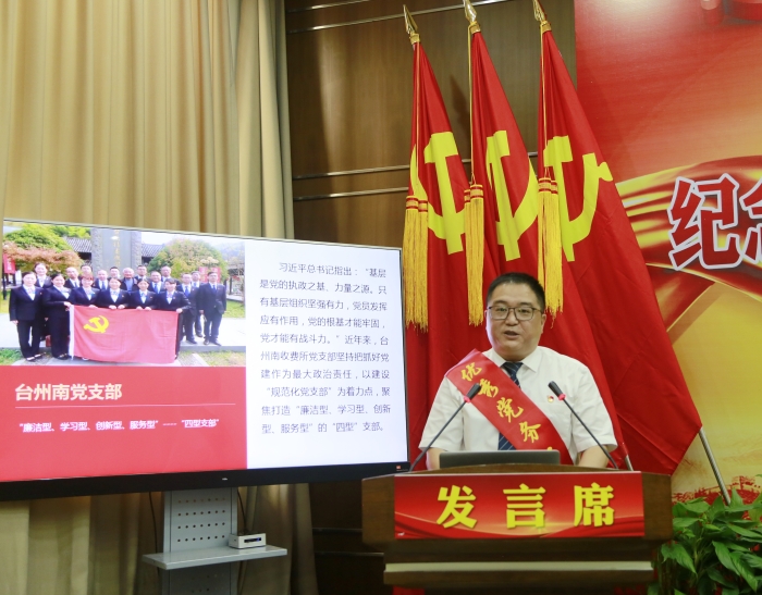 圖為臺(tái)州收費(fèi)所黨支部牟丹發(fā)言