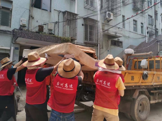 圖為臺(tái)州高速志愿者支援災(zāi)區(qū)重建現(xiàn)場(chǎng) 在臨海古城赤城路米篩巷,臺(tái)州高速集團(tuán)的志愿者們頂著毒辣的太陽(yáng),不怕臟不怕累,積極為災(zāi)后重建貢獻(xiàn)力量,清理路面淤泥、垃圾,保障路面清潔以及道路順暢。 真情傳遞溫暖 愛(ài)心匯聚力量, 面對(duì)災(zāi)后重建, 臺(tái)州高速集團(tuán)用實(shí)際行動(dòng), 彰顯鐵軍精神, 承擔(dān)社會(huì)責(zé)任, 展現(xiàn)使命擔(dān)當(dāng)。