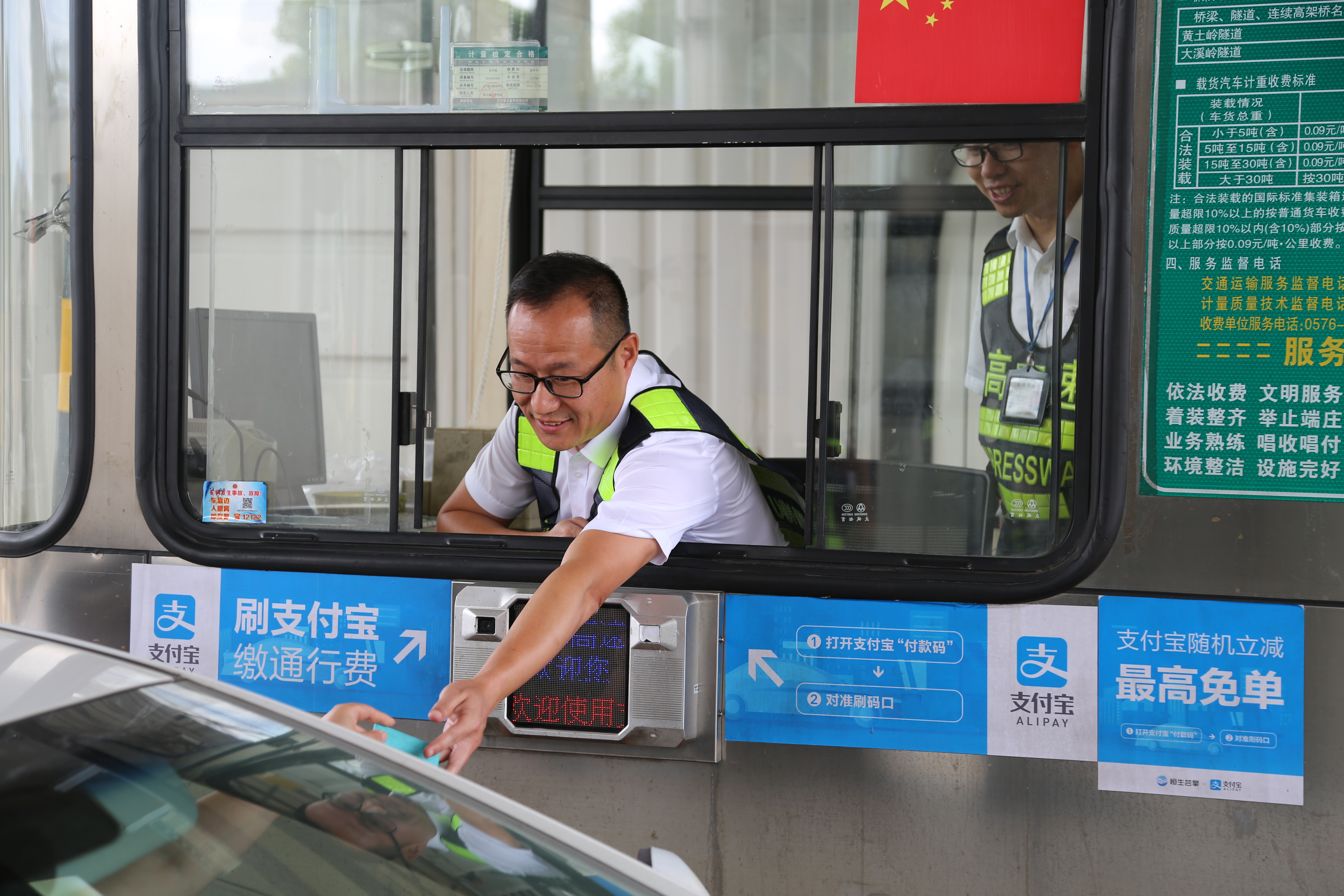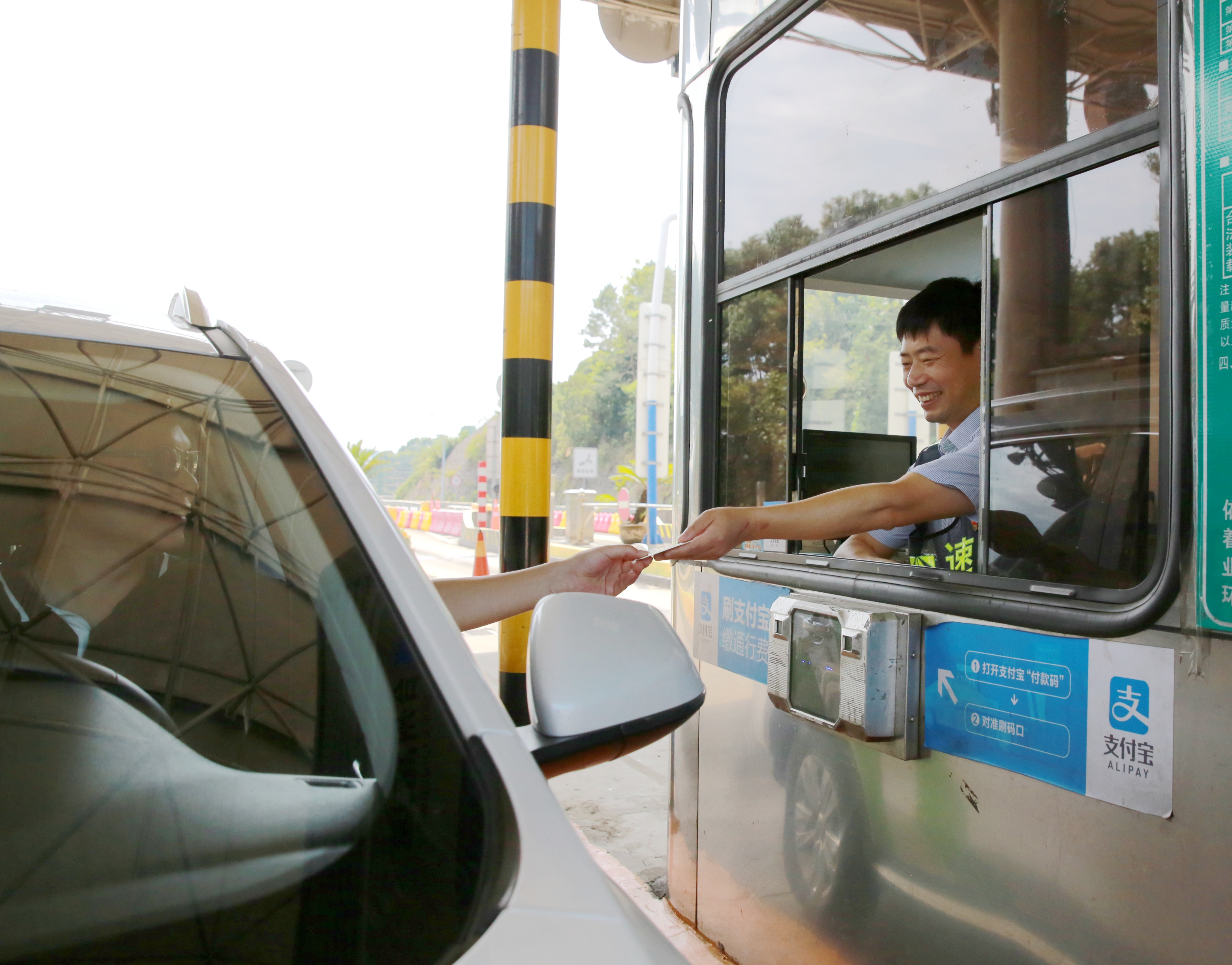 而在對面發(fā)卡的安全總監(jiān)項同富正襟危坐,等待著車子的駛?cè)耄?/span>“記住動作就忘記微笑,笑起來又忘記要說什么......真有點手忙腳亂的,做好收費員,不容易?!?/span>