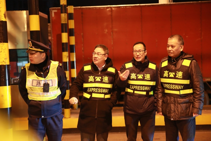 為確保取消省界收費站工作平穩(wěn)過渡,12月31日,臺州市副市長林先華、市交通局局長陸善福、市公路局局長馬德勝,以及當(dāng)?shù)卣块T領(lǐng)導(dǎo)紛紛來到集團一線收費站,協(xié)力助推取消高速公路省界收費站工作順利開展。