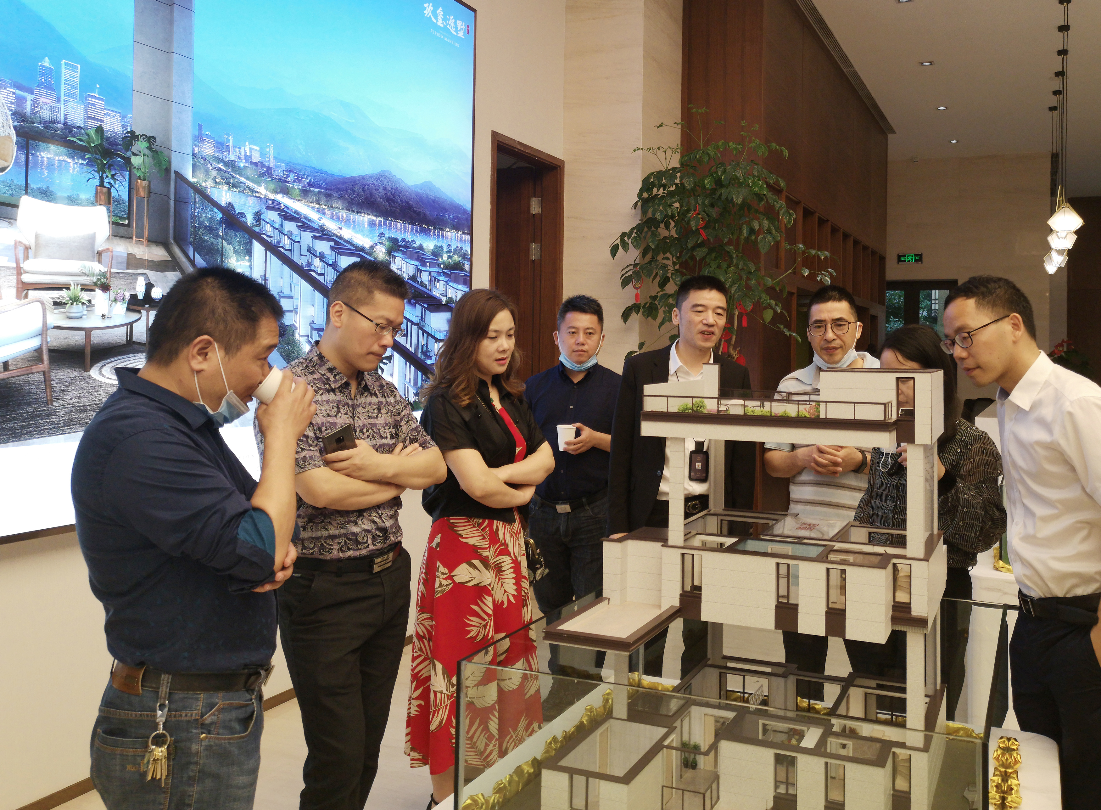 圖為陳文波對照圖紙了解樓盤情況 在銷售展廳樓盤沙盤前,陳文波聽取了高速房產(chǎn)(集團)公司負責(zé)人關(guān)于玖璽逸墅項目銷售計劃、認籌客戶等情況匯報。他對前期房產(chǎn)公司的辛苦付出給予充分肯定,要求大家認真服務(wù)好每一個來訪客戶,彰顯出國企品質(zhì),全力做好銷售工作。 當天,銷售展廳樓內(nèi),陸陸續(xù)續(xù)有客戶進出,“我很早就看中這個樓盤了,不僅位置好,而且采光好、通風(fēng)好,居住在這里一定非常舒服?!币幻麥士蛻魪埮靠滟澋溃裉焖匾馇皝斫桓墩J籌金。  圖為客戶在疊墅沙盤前參觀