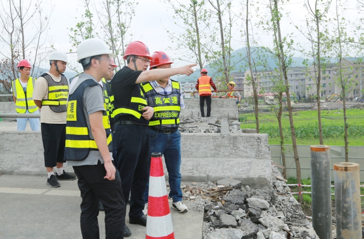 圖為陳文波在溫嶺西收費站匝道橋梁維修工程現(xiàn)場了解情況