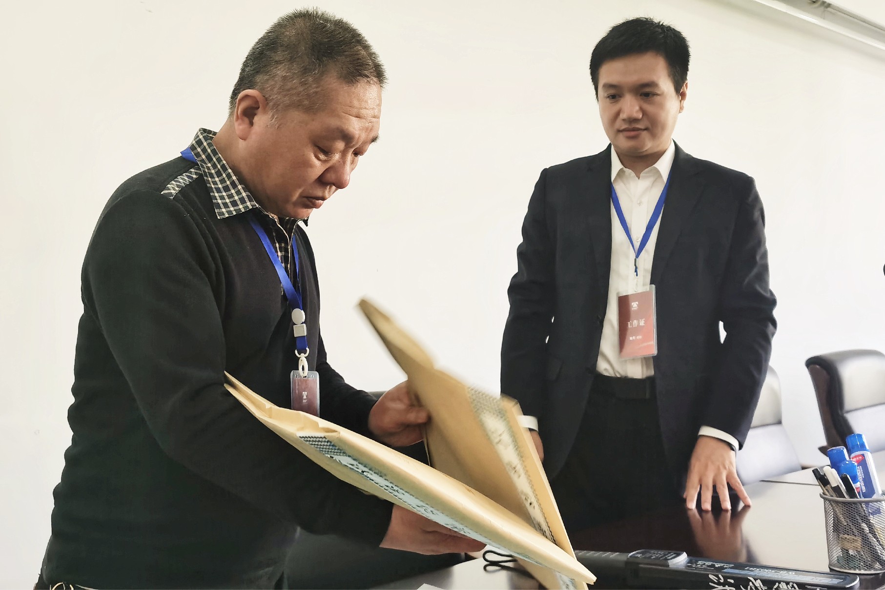 (圖為董事長汪利國、總經(jīng)理彭?xiàng)钴?、監(jiān)察室主任邵克于現(xiàn)場巡查監(jiān)督)