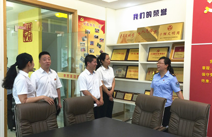 圖為參觀學習現(xiàn)場 在章安中心所所長吳玲珍的帶領下,大家先后參觀了章安收費所所文化建設、黨建活動室、員工學習室等,隨后在會議室展開座談交流,重點就收費所稽查考核機制、稽查人員安排、綠農車檢查等工作中遇到的熱點難點問題和解決方法進行了磋商探討。 通過學習交流,大家開闊了視野、拓寬了思路,意識到可以借鑒臺金公司較成熟的稽查考核經驗,并結合本部門實際,優(yōu)化稽查機制、提高稽查效率,進一步提升各收費所的稽查考核管理水平。 葉茂