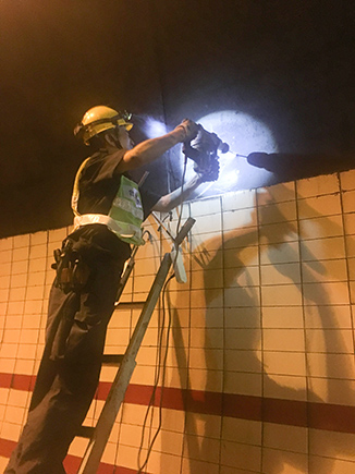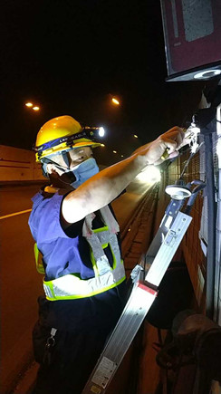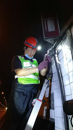 圖為工作人員安裝消防燈燈泡 大溪嶺—湖霧嶺隧道全長4116米,為保障隧道內(nèi)行車安全、暢通、舒適,定期組織安排清洗隧道兩壁墻體、邊溝,檢修內(nèi)部各項機電設(shè)施成了維養(yǎng)中心每季必不可少的工作之一。而每次清洗檢修必將涉及封道,為最大程度減少因封道對社會造成的負面影響,中心工作人員早在一周前就對隧道內(nèi)各項損壞機電設(shè)備進行摸底統(tǒng)計,以便合理制定維修方案和安排施工人員。 12號早上7點,隨著封道工作就緒,兩組清洗隊伍分別從隧道中部開始向兩頭清洗,六組專業(yè)燈具維修人員站在貨車腳手架上由北往南逐個推進,發(fā)現(xiàn)一盞修復一盞,或更換燈管、或更換觸發(fā)器、或更換鎮(zhèn)流器,對于一些同時有多個配件壞死或腐蝕嚴重的燈具就直接采取整體更換措施,大大提高了工作效率。而中心工作人員除了現(xiàn)場全程協(xié)調(diào)管理以外,還負責修復隧道兩壁逃生標志及報警電話等多個指示牌。按照之前制定的計劃,六人兵分兩組由隧道兩頭分別向中間修復,這樣既能與其他工作同時進行又不造成相互干擾。另外一人則配合隧道所一起在登高車協(xié)助下,對洞內(nèi)各類攝像頭進行逐個清理,全場人員各司其職,各盡其責,現(xiàn)場一派忙碌的景象。 4公里多長的隧道,由于流動性差,洞內(nèi)空氣質(zhì)量比霧霾嚴重數(shù)倍,僅一只口罩根本凈化不了廢氣,但由于時間緊,任務(wù)重,中心隊員和施工人員顧不上惡劣的環(huán)境,努力和時間賽跑,兩日下來共修復(清理)損壞燈具100余套,各類標志指示牌40余塊,攝像頭30余個,恢復了隧道內(nèi)各項機電設(shè)施的正常運行,排除一切安全隱患,有效保證了隧道安全暢通。 項寅曉
