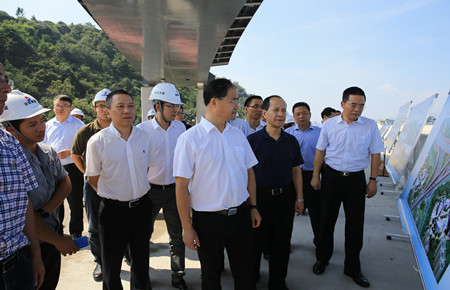 圖為市委書記王昌榮在內(nèi)環(huán)路江口段查看工程進(jìn)度