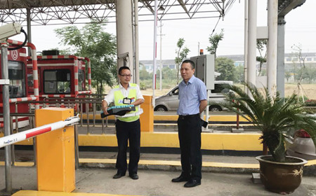 圖為集團(tuán)副董事長(zhǎng)、總經(jīng)理張建平在溫嶺西收費(fèi)所檢查