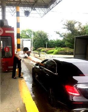 信息就是命令,臺州南收費所第一時間將ETC切換成了人工收費模式。但是增加了一個車道仍是無法緩解這排山倒海之勢的車流量,最高峰時,該路段一度排起了約10公里的長龍,密密麻麻的車輛都在等著出站,保暢群里告急聲聲。臺州南收費所所長王益民坐不住了,一邊去電維養(yǎng)中心“能否將進口的一個車道改成出口車道?”,一邊帶領(lǐng)行政人員趕往副站協(xié)助分流。針對進口人工車道的電腦被收費程序占用,提前根據(jù)車型在通行卡上寫好類別,安排人員在車道上進行發(fā)放。不斷奔跑著發(fā)卡,數(shù)不清的來來回回,全心投入在保暢工作中的員工們竟不覺得乏累。同時,還特地在外廣場擺放友情提示牌,讓過往司乘可以多渠道提前了解通行信息。此情此景,不少過往司乘人員都不由地伸出了大拇指,為臺州高速創(chuàng)新的收費模式和貼心的文明服務(wù)點贊。